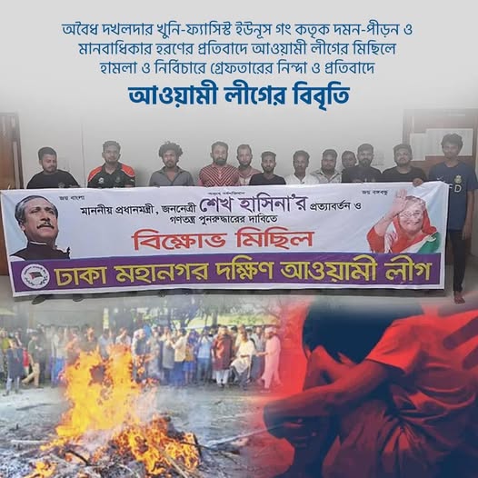 বাংলাদেশ আওয়ামী লীগ সম্প্রতি রাজধানীতে বিভিন্ন স্থানে শান্তিপূর্ণ মিছিলের সময় হামলা এবং নির্বিচার গ্রেপ্তারের ঘটনার তীব্র নিন্দা ও প্রতিবাদ জানিয়েছে।