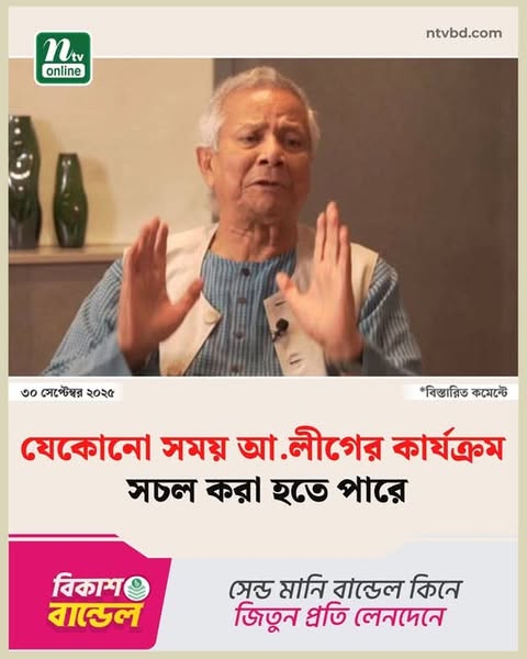 মোহাম্মাদ ইউনূসের ব্যবসায়ী হিসাবে উত্থানের মূল পুঁজি―’Optimism seller’. মাঝে মাঝে বেফাঁস বলেন রাজনৈতিক অনভিজ্ঞতা থেকে। এবারকার জাতিসংঘ অধিবেশনের সাইড লাইনে এক সাক্ষাৎকারে বলেছেন―” যে কোনও সময় আঃলীগের কার্যক্রম সচল করা হতে পারে।“ আবার কৌশল করে বলেছেন―’আমরা আওয়ামী লীগকে নিষিদ্ধ করিনি।‘
