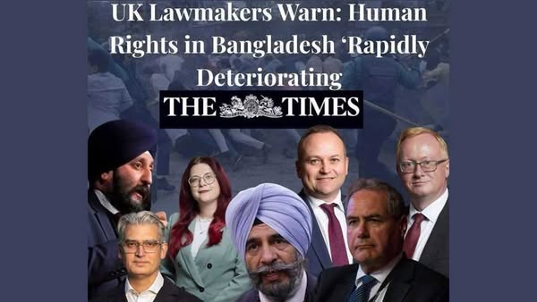 এর মধ্যে ঢোলে বাড়ি মারার ঘটনা ঘটেছে লন্ডনে। গত ৩ অক্টোবর ২৫’ তারিখে The Times “British MPs call for an early & inclusive polls in Bangladesh; criticises human rights situation” এই শিরোনামে একটি রিপোর্ট করেছে। যেখানে বাংলাদেশে মানবাধিকারের লঙ্ঘন নিয়ে ব্যবস্থা নেওয়ার আহ্বান জানানো ছাড়াও ব্রিটিশ সরকার এবং জাতিসংঘকে সংস্কারের জন্য ঢাকার উপর চাপ প্রয়োগের আহ্বান জানিয়েছেন। The Times এর রিপোর্টটি ৪ তারিখে ‘bdnews24.কম’ অনুবাদ করে ছেপেছে।