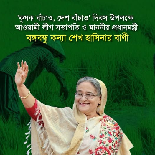 আমার প্রাণপ্রিয় কৃষক ভাই ও বোনেরা, আগামীকাল ৩০ অক্টোবর, ‘কৃষক বাঁচাও, দেশ বাঁচাও’ দিবসে আপনাদের প্রতি আমার গভীর শ্রদ্ধা ও ভালোবাসা জানাই।