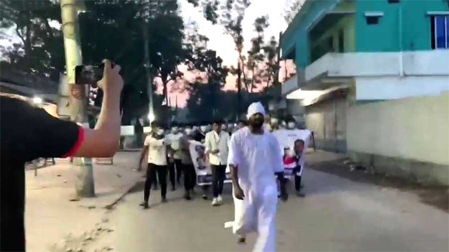 সামাজিক যোগাযোগমাধ্যমে ছড়িয়ে পড়া বিভিন্ন ভিডিওতে দেখা যায়, দশমিনা সরকারি আবদুর রশিদ তালুকদার ডিগ্রি কলেজ ছাত্রলীগের সভাপতি জায়েদ প্যাদা মাথায় ও শরীরে কাফনের কাপড় পরে সামনে থেকে মিছিলটির নেতৃত্ব দিচ্ছেন। মিছিলে তার পেছনে শতাধিক ছাত্রলীগ নেতাকর্মী অংশ নেন।