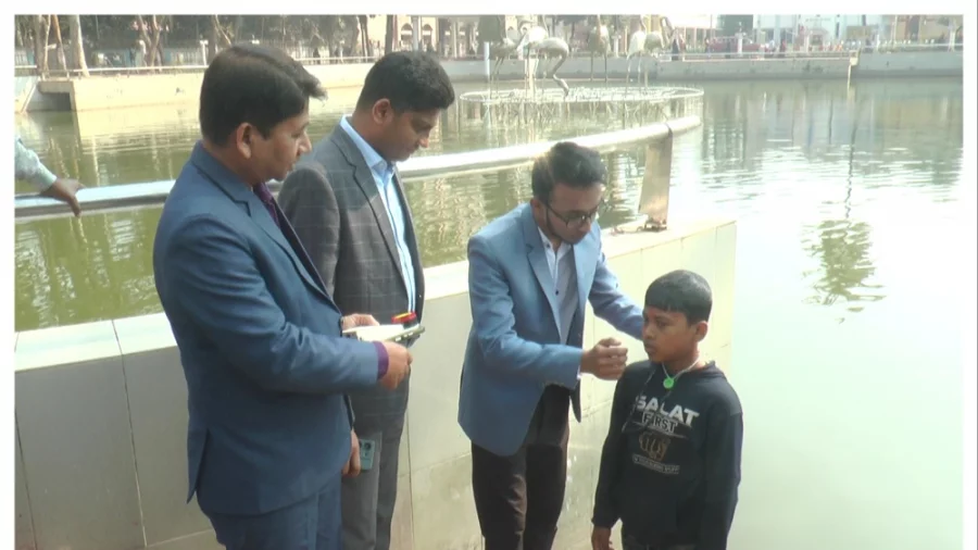 সাঁতার না জানা একটি শিশু পানিতে পড়ে যেতেই মুহূর্তের মধ্যে সাইরেন বেজে ওঠে। আশপাশের মানুষ ছুটে এসে পানিতে ঝাঁপিয়ে শিশুটিকে উদ্ধার করে। বাস্তবে এটি কোনো দুর্ঘটনা নয়, বরং পানিতে ডুবে শিশু মৃত্যুর ঝুঁকি কমাতে উদ্ভাবিত একটি ব্যতিক্রমী ডিভাইসের মহড়া।
